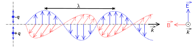 Ainsi, l'onde électromagnétique, c'est-à-dire la valeur du champ électrique et du champ magnétique selon l'endroit et du moment ( et